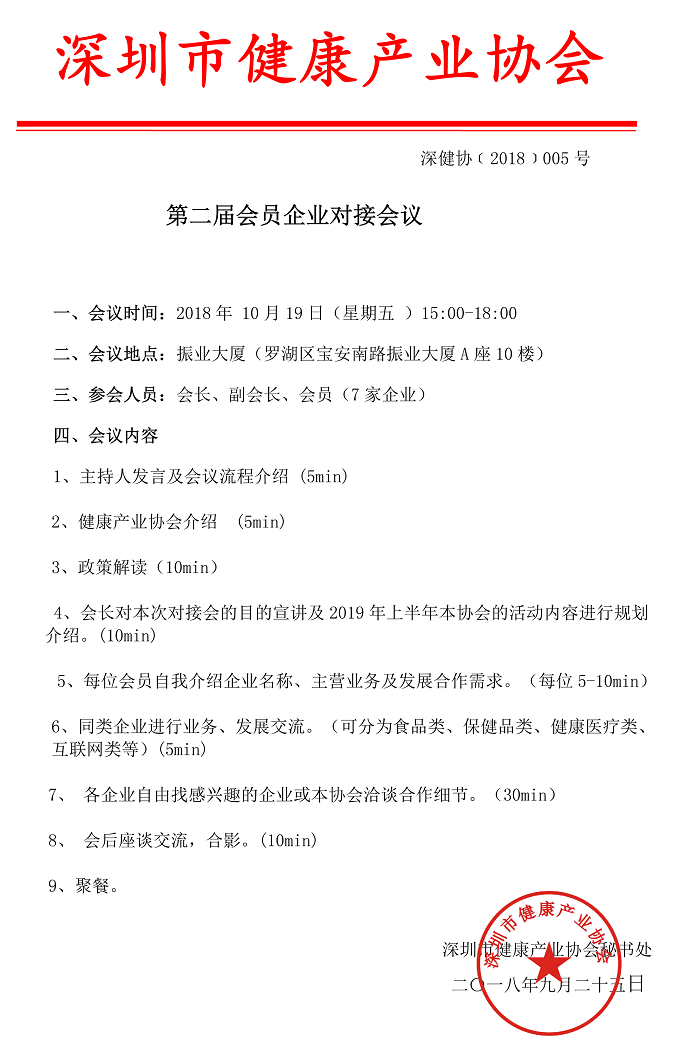深圳市健康產(chǎn)業(yè)協(xié)會(huì)資源第二屆對(duì)接會(huì)議通知