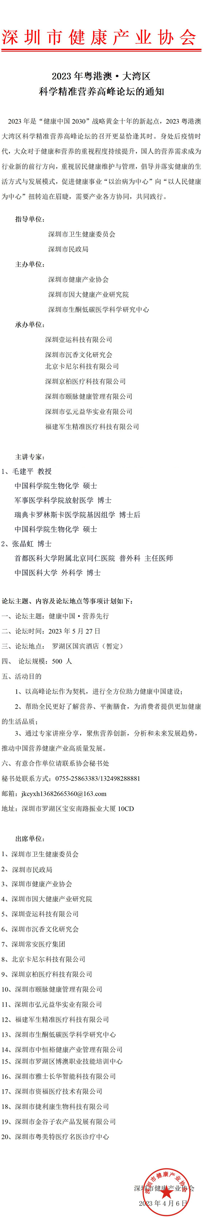 『2023 粵港澳·大灣區(qū)科學(xué)精準(zhǔn)營(yíng)養(yǎng)高峰論壇』的通知